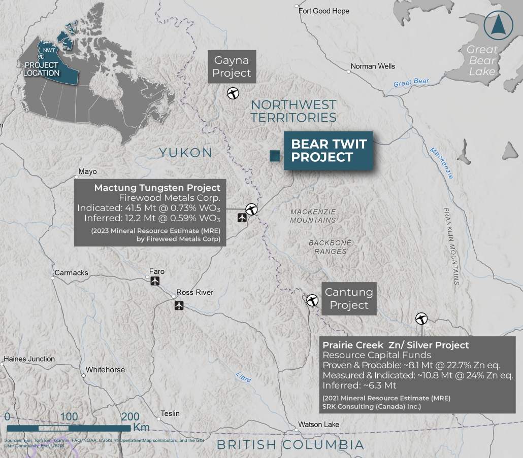 Located 102km SW of Fireweed Metals Macpass Project (100m MT @ circa 7 % zn eqv). Macpass is one of the world’s largest undeveloped zinc assets not held by a major.